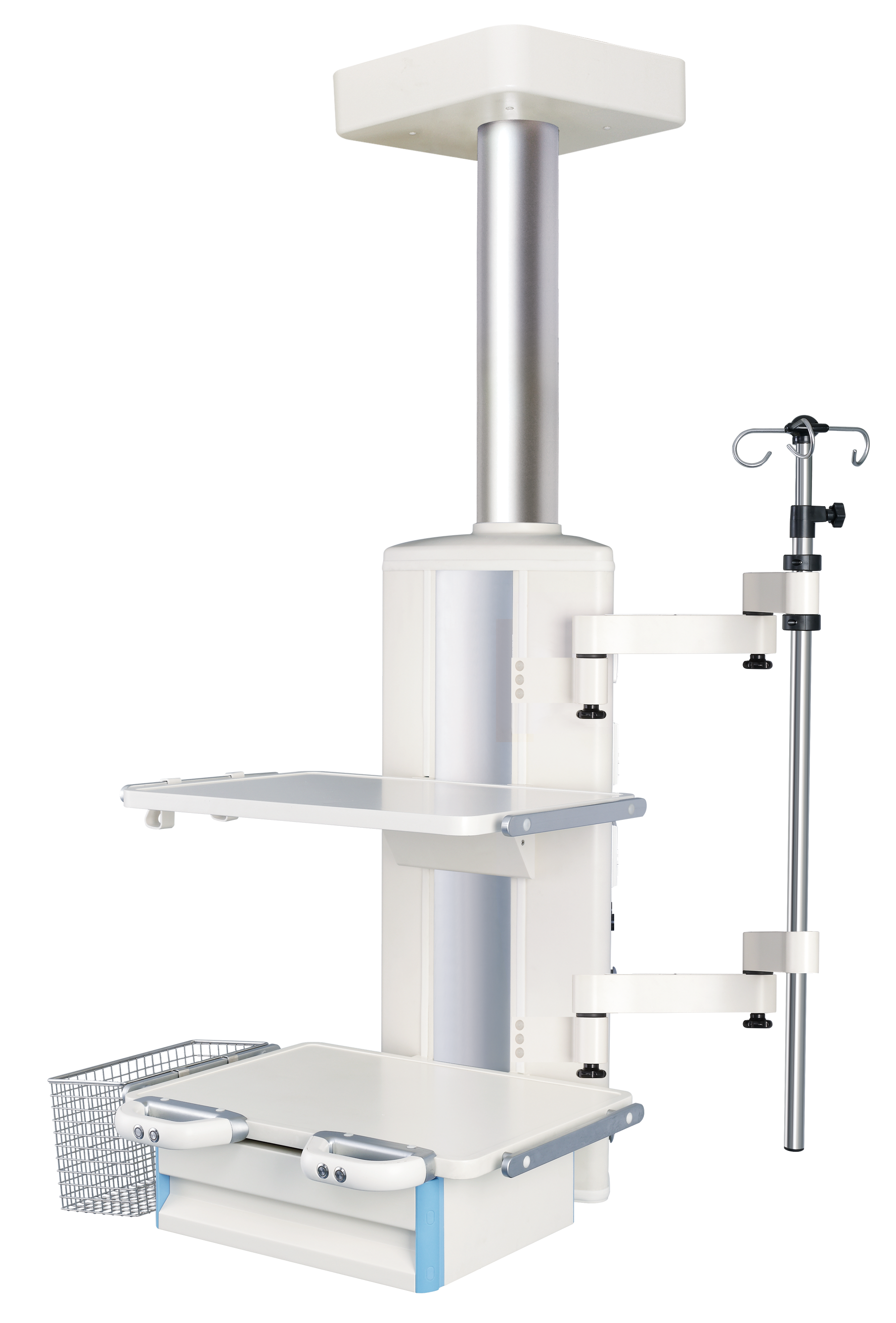 是現(xiàn)代手術(shù)室常用的一種新型實(shí)用的醫(yī)療輔助設(shè)備,其結(jié)構(gòu)緊湊,設(shè)計(jì)合理,既能電動(dòng)升降又能在一定直徑范圍內(nèi)旋轉(zhuǎn)340度,降低時(shí)醫(yī)護(hù)人員抬手可及,升高后則不影響任何工作,并配置氣動(dòng)剎車防飄移,可根據(jù)醫(yī)護(hù)人員要求,輕松移動(dòng)和鎖定塔體位置。必備的醫(yī)用氣體、吸引、強(qiáng)弱電、網(wǎng)絡(luò)輸出終端集中在平臺(tái)功能箱體上,平臺(tái)可承載一定重量的醫(yī)療儀器,是醫(yī)護(hù)人員理想的醫(yī)氣、電源、儀器平臺(tái)工作站